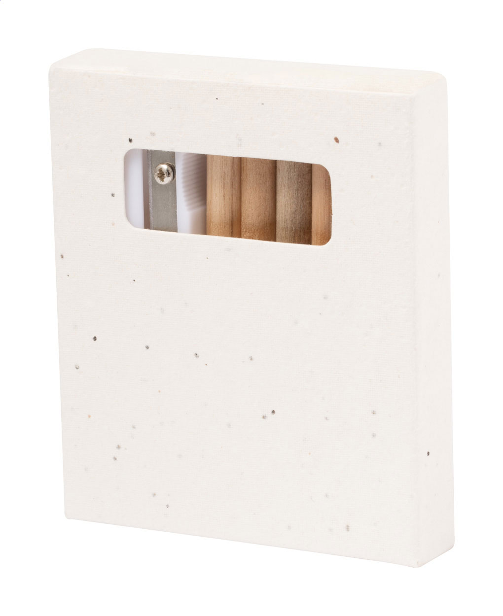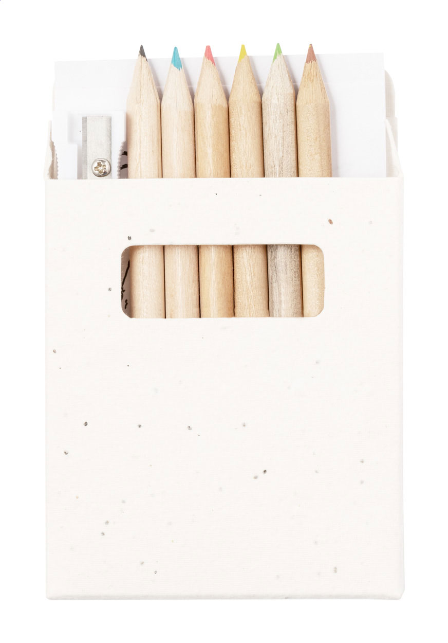 Sada na vybarvení v papírové krabičce se semeny. Včetně 6 dřevěných pastelek, ořezávátka a 20 listů omalovánek. Papírová krabička obsahuje semena petúnie v různých barvách, která lze po použití zasadit.