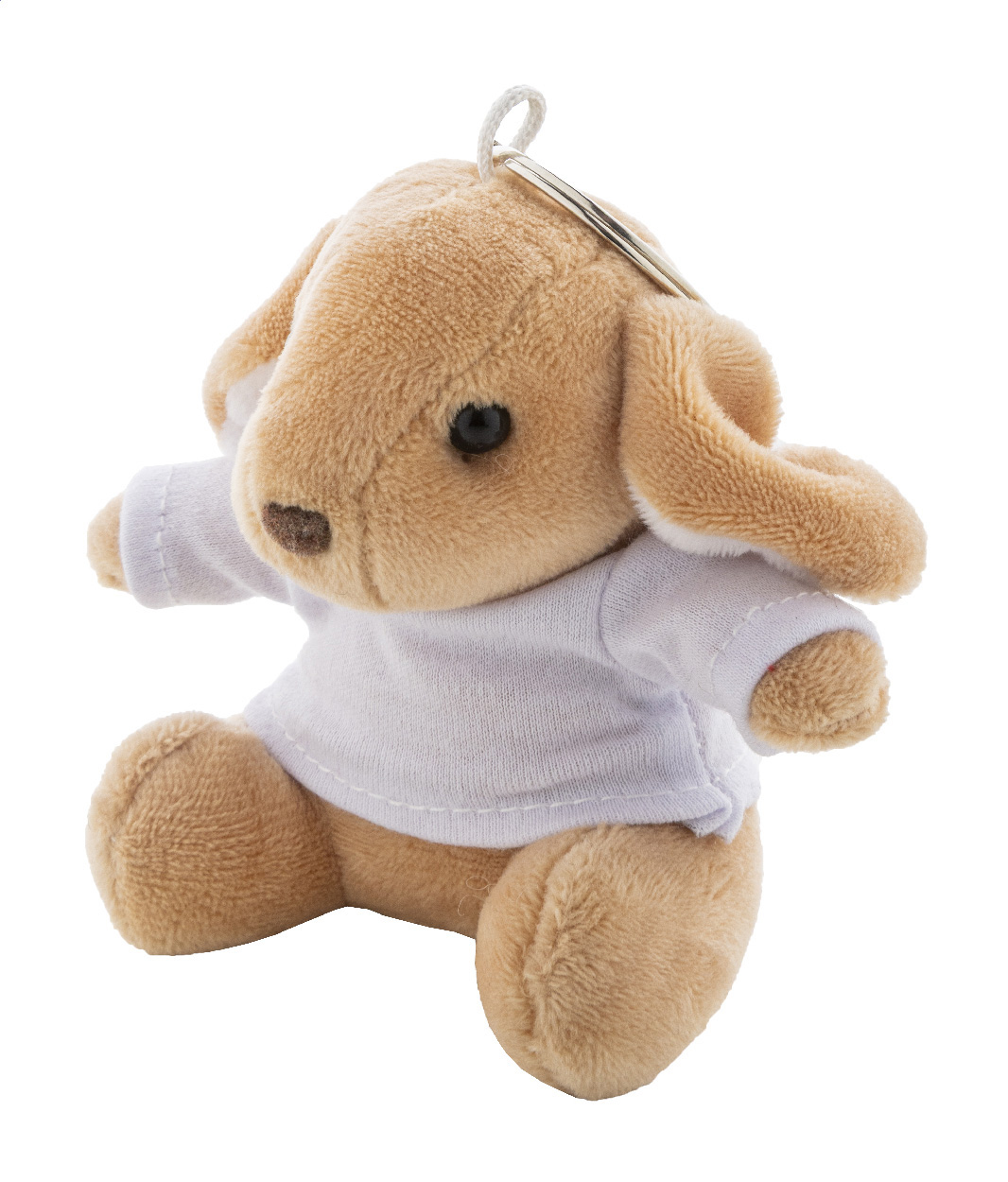 Plyšový přívěsek na klíče se zajícem s tričkem na potisk.