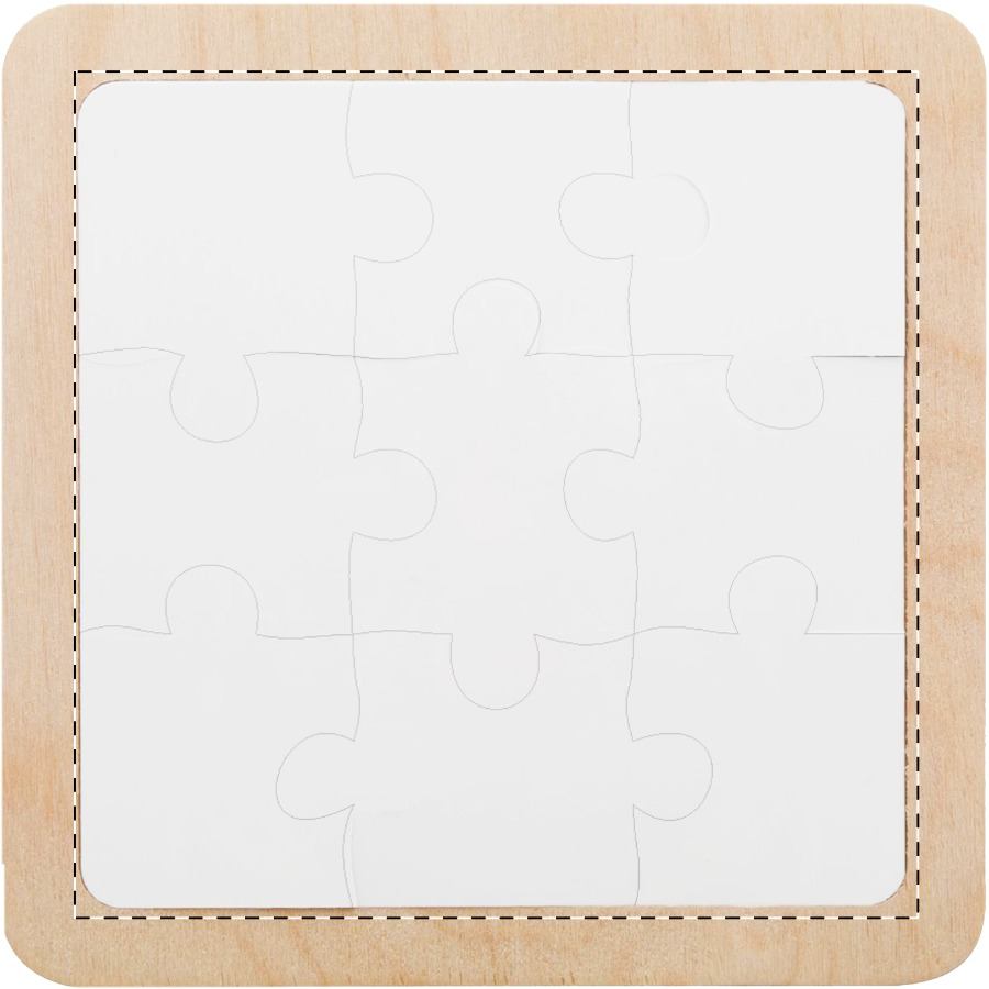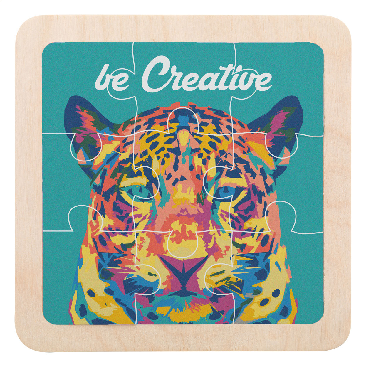 Plastové puzzle, 9 dílů, s vlastní grafikou, na polaminované dřevěné desce z břízy. Cena zahrnuje UV LED potisk, nezahrnuje tiskovou přípravu. Min. mn.: 100 ks.