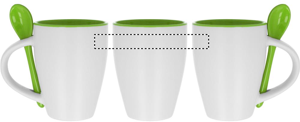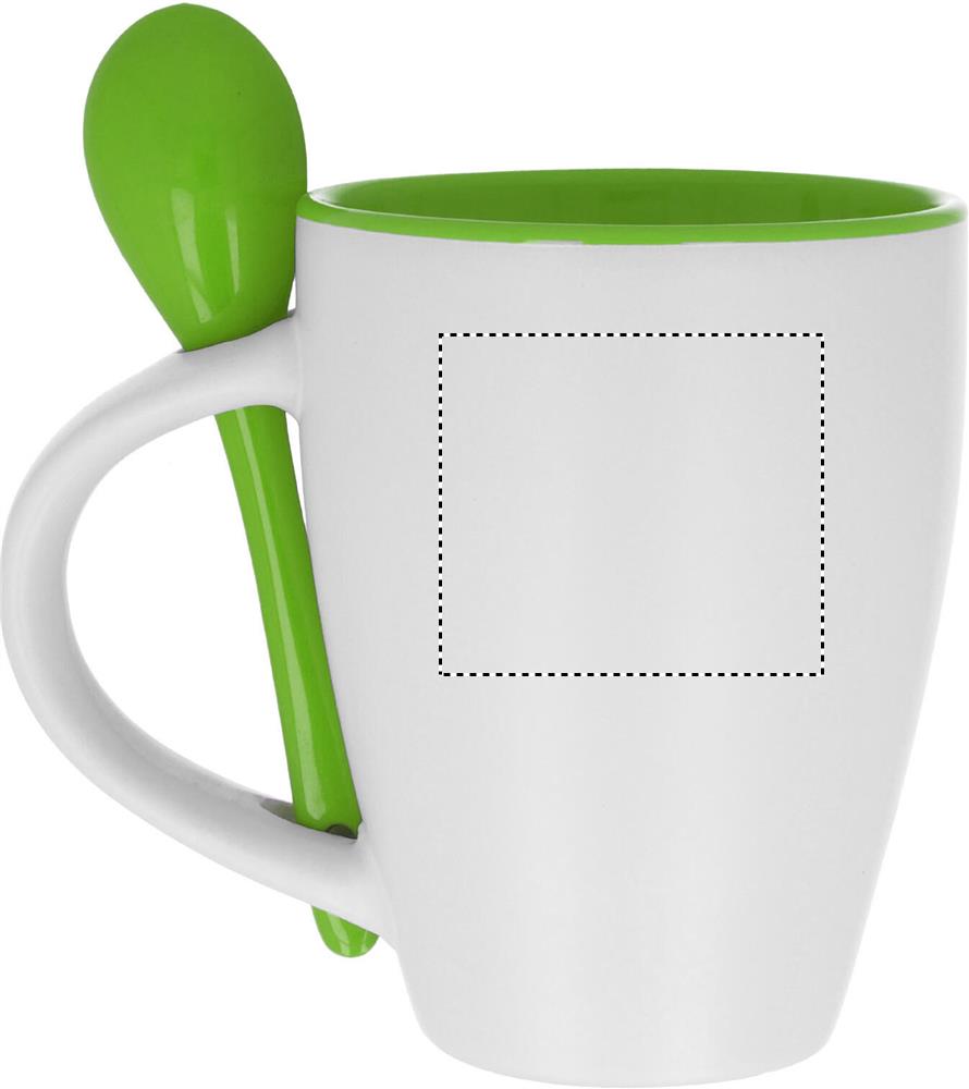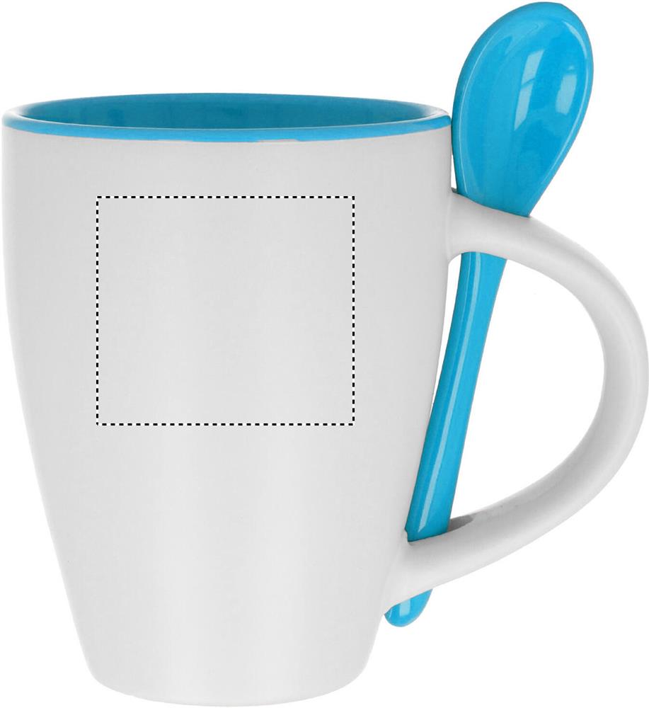 Dvoubarevný keramický šálek se lžičkou, 250 ml. Keramický transfer je vhodný pro mytí v myčce. Jednotlivě baleno v krabičce 11,5x10x5x9,3 cm.