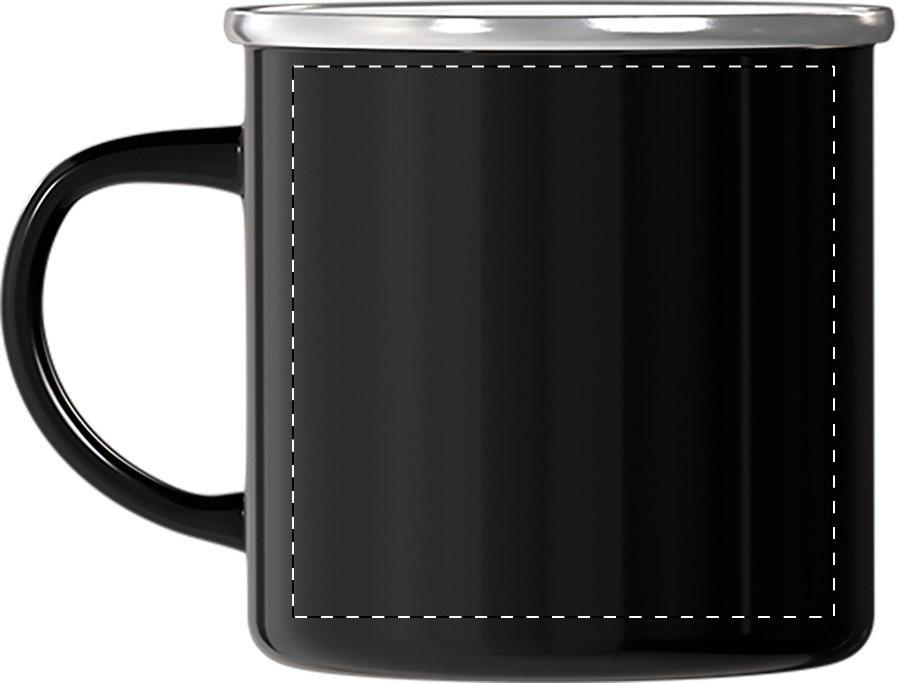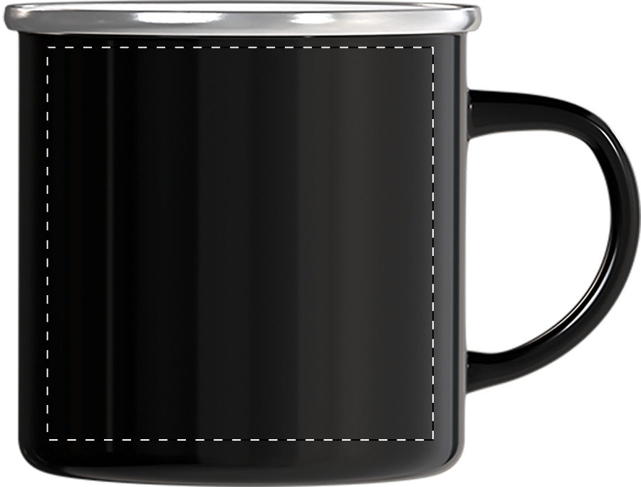 Vintage kovový smaltovaný hrnek s nerezovým okrajem, 300 ml.