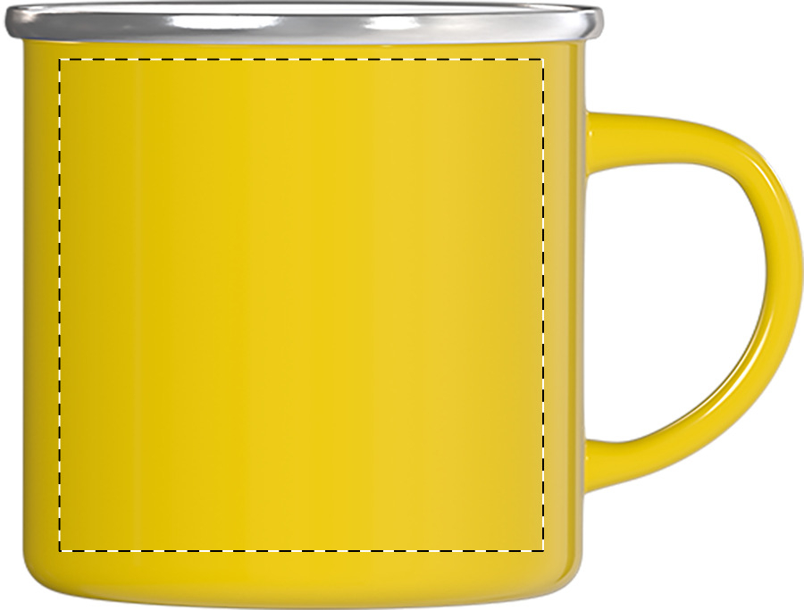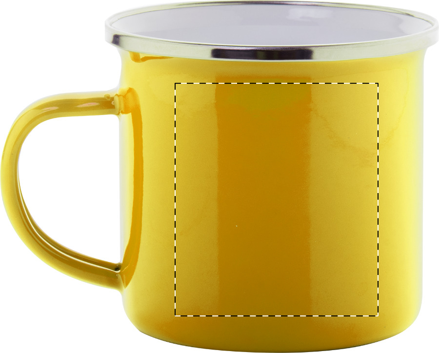 Vintage kovový smaltovaný hrnek s nerezovým okrajem, 300 ml.
