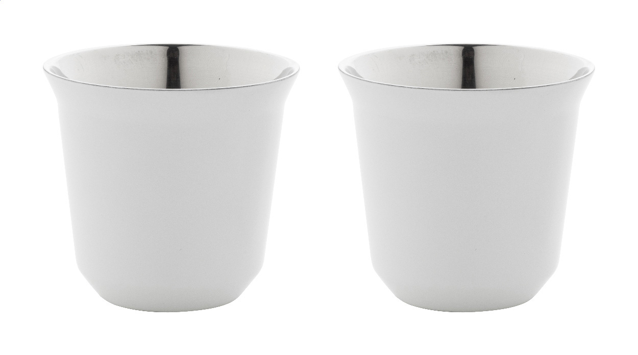 Sada 2 dvoustěnných termohrnků na espresso ve tvaru kávových kapslí z recyklované nerezové oceli, 80 ml. V krabičce z kraftového papíru.