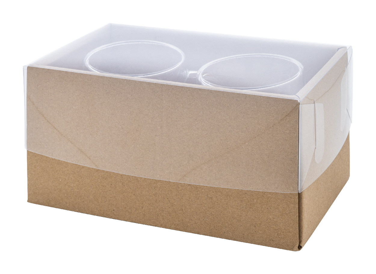 Sada šálků na espresso z borosilikátového skla s dvojitou stěnou, 2 ks šálků a bambusovými podšálky, 90 ml. V krabičce ze sulfátového papíru.