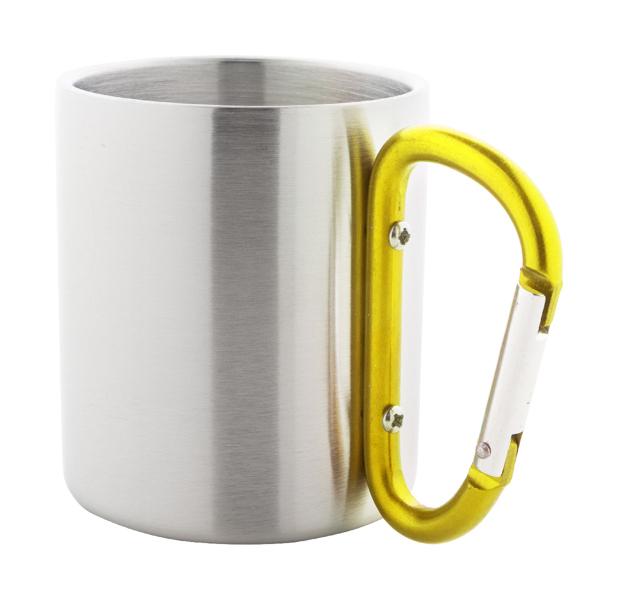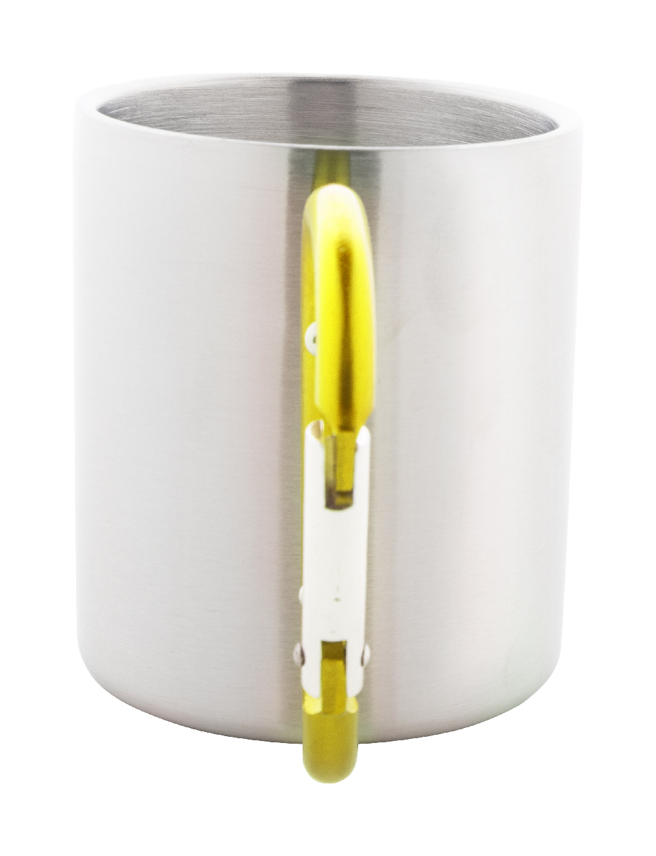 Nerezový hrnek s barevným karabinkovým uchem, 200 ml.