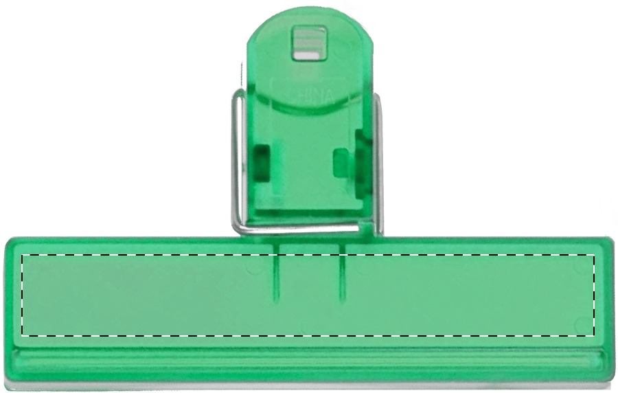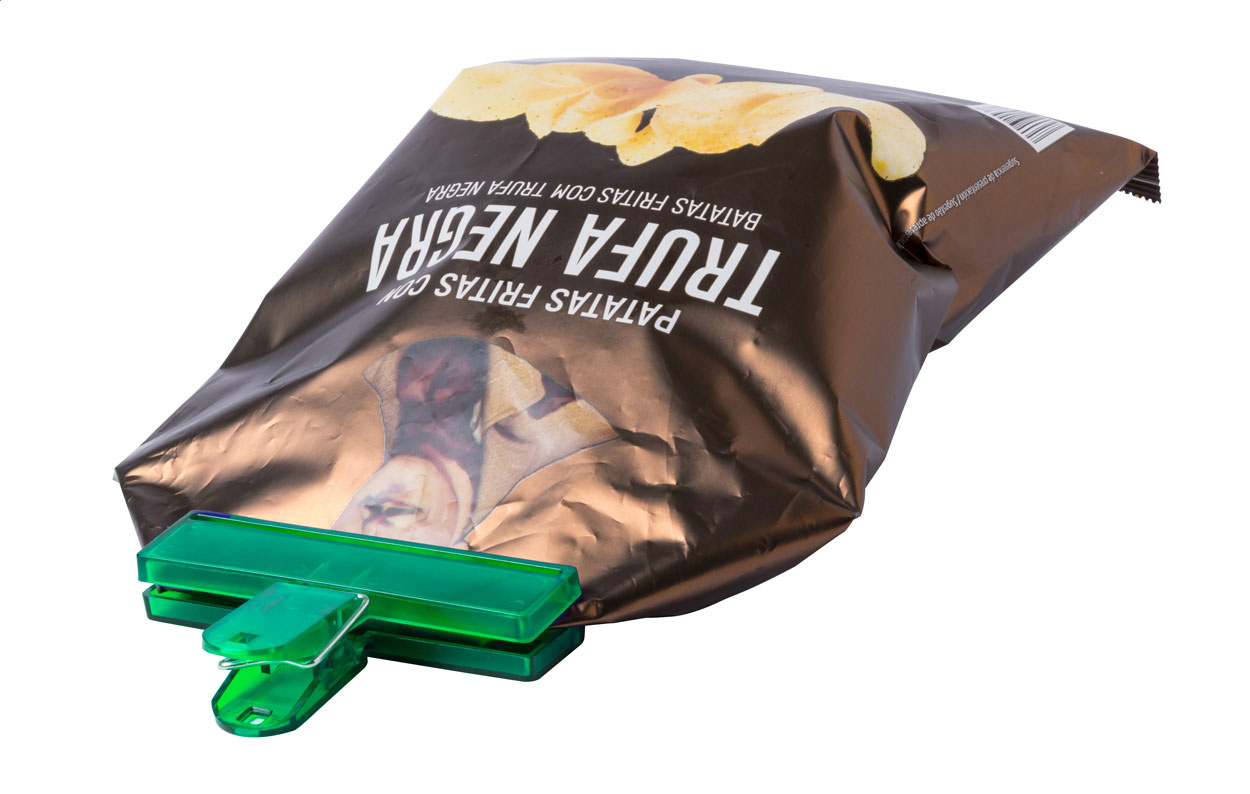 Průsvitný plastový klip na uzavření obalu.
