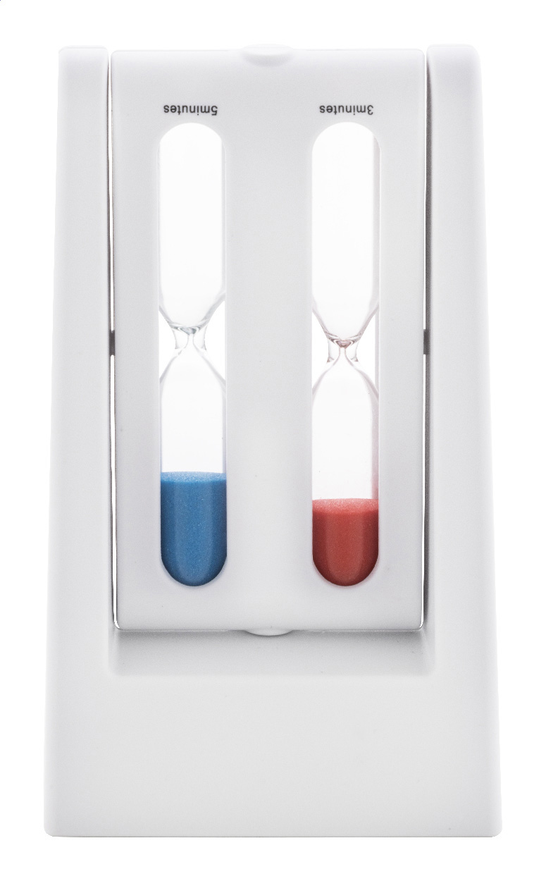 Přesýpací hodiny z recyklovaného ABS materiálu s otočnými přesýpacími hodinami s 3 a 5 minutami.