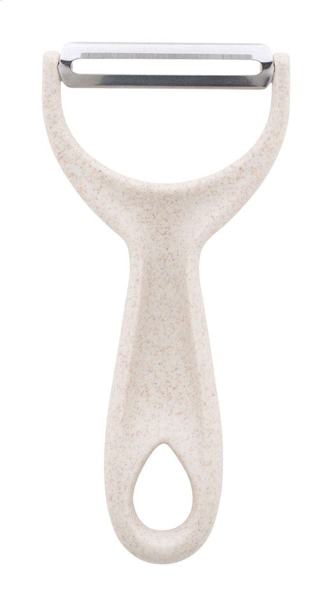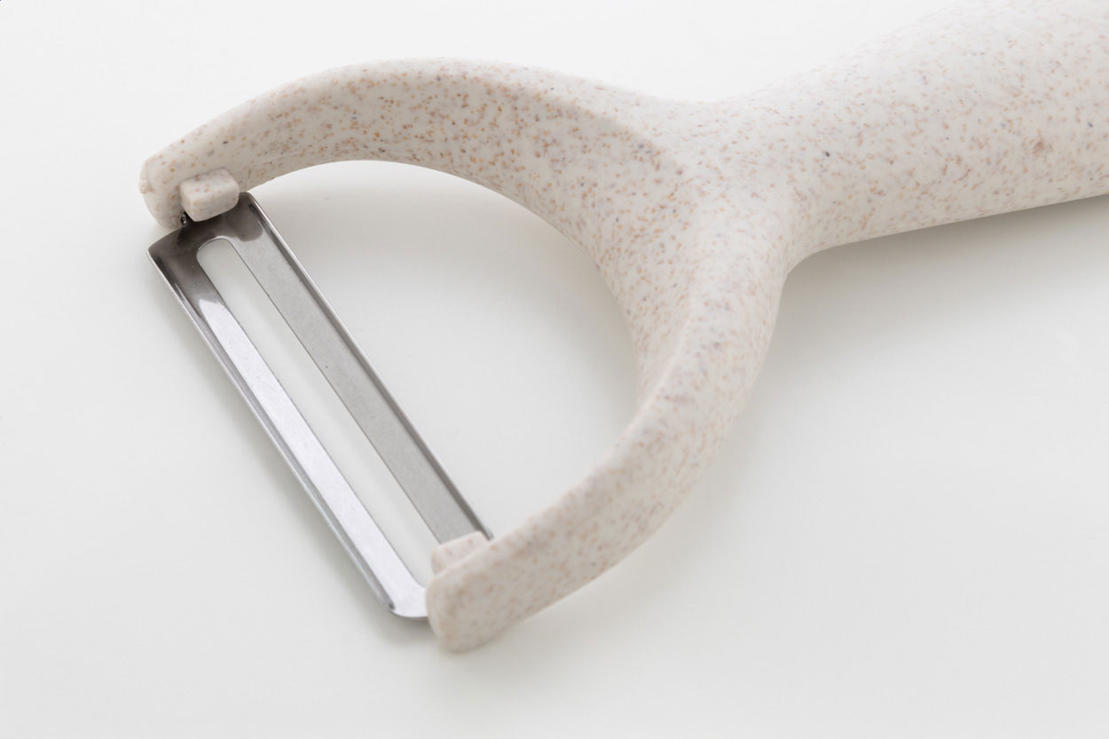 PP plastová škrabka na zeleninu s čepelí z nerezové oceli.