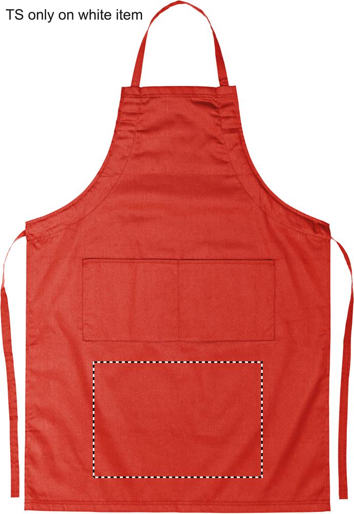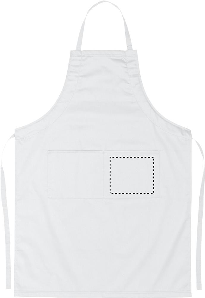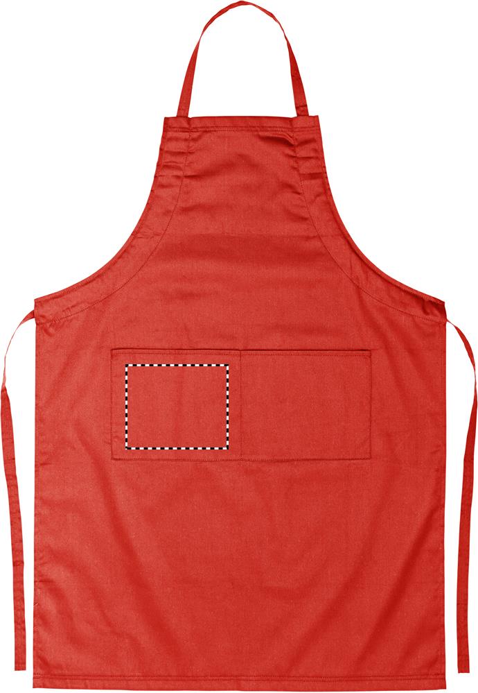 Nastavitelná kuchyňská zástěra se 2 předními kapsami z 10% bavlny a 90% polyester, 190 g/m2. Tento výrobek má certifikát OEKO-TEX® STANDARD 100.