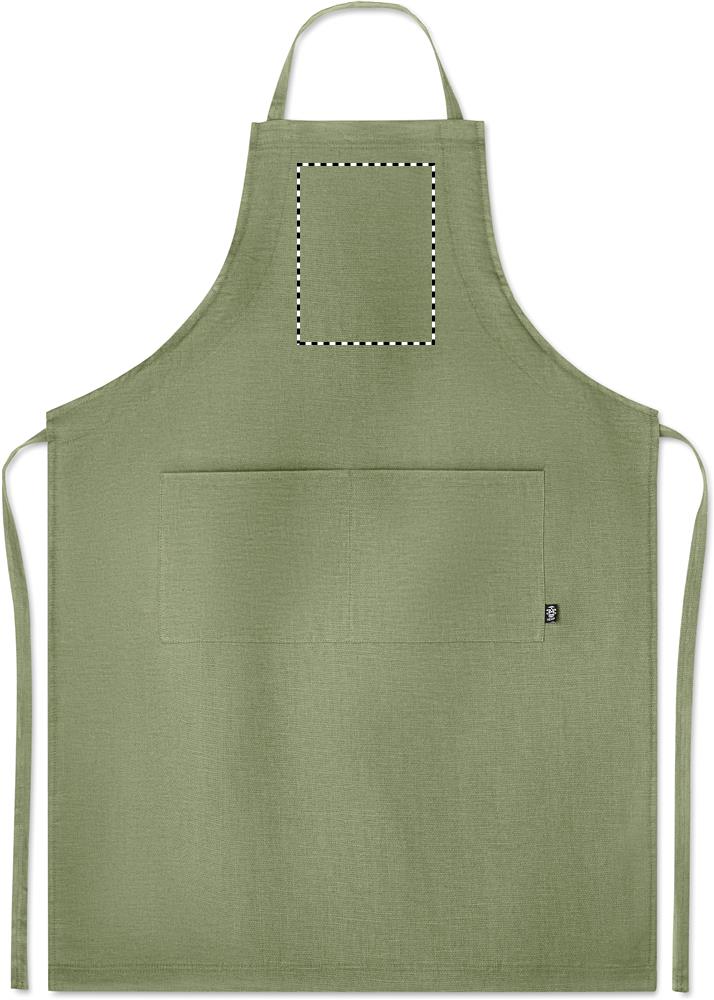 Nastavitelná kuchyňská zástěra z 200 gr/m² 100% konopné látky. 2 přední kapsy.