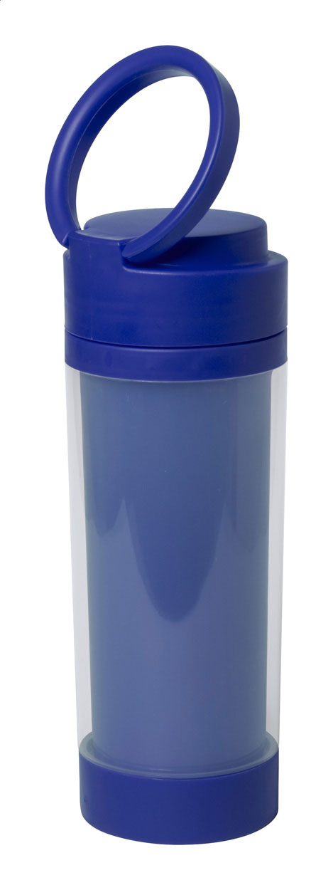Plastová sportovní láhev s držadlem na víčku a výsuvným držákem na mobil na dně. V dárkovém balení. 390 ml. Není vhodná pro sycené nápoje.