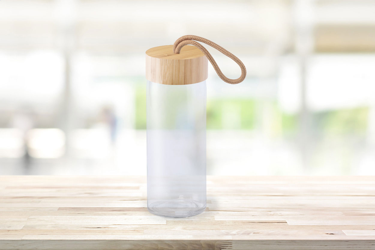 Skleněná láhev s bambusovým víčkem, 430 ml. V dárkové krabičce. Nevhodné pro sycené nápoje.