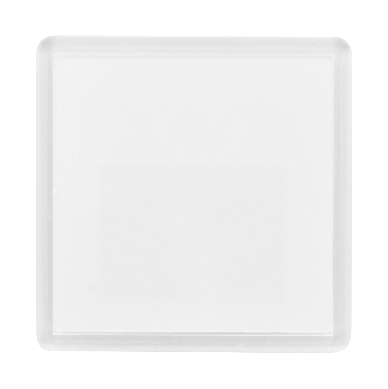 Čtvercový akrylový magnet na ledničku s plnobarevnou papírovou vložkou na zakázku. Cena zahrnuje digitální tisk, cena nezahrnuje tiskovou přípravu. Min. mn.: 100 ks.