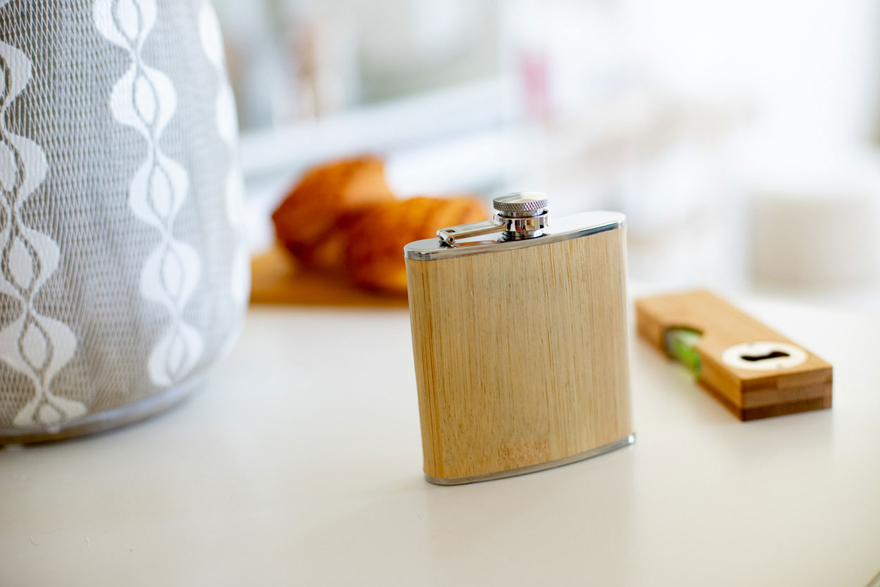 Butylka z nerez oceli potažená bambusem, 175 ml.
