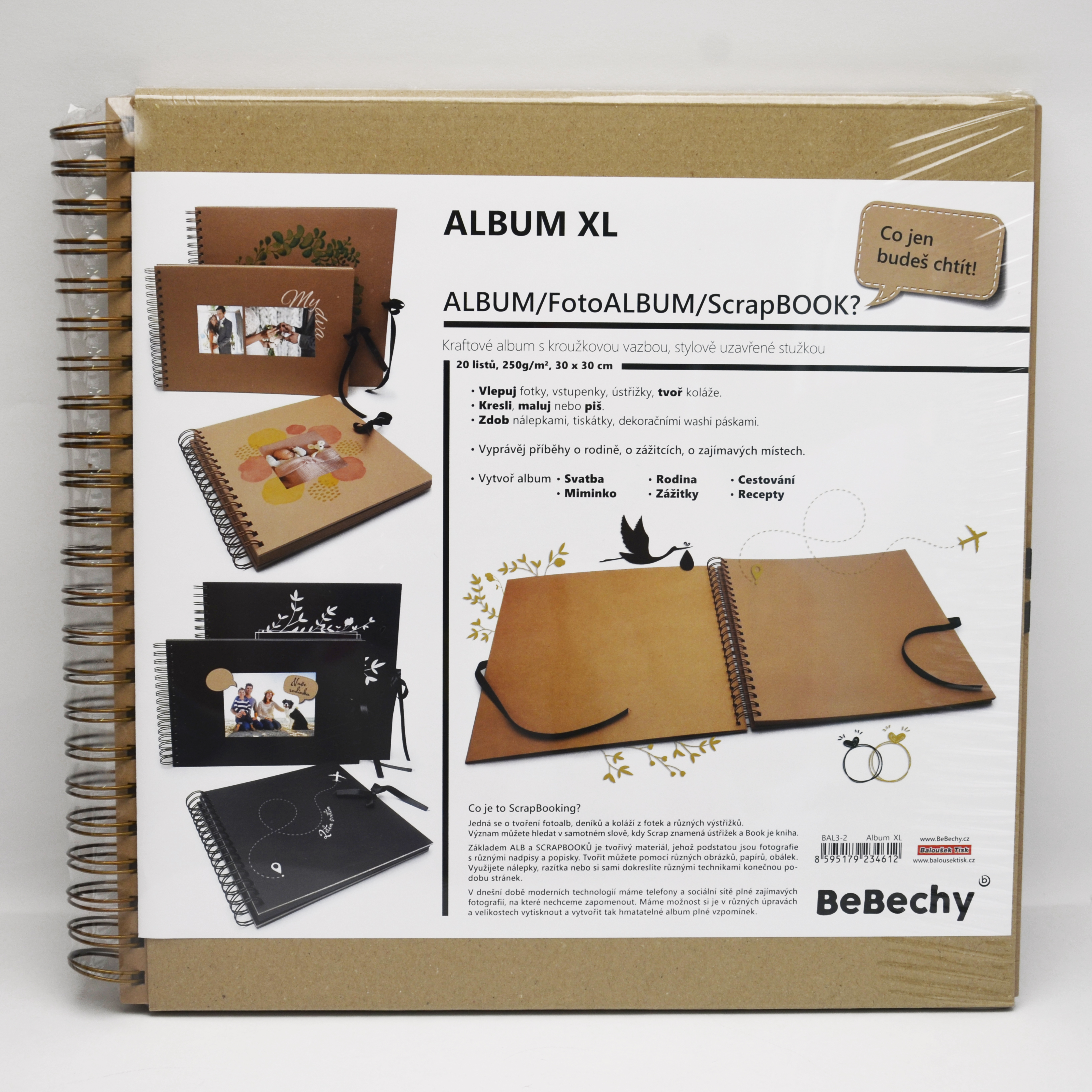 Alba jsou s kroužkovou vazbou pro lepší otáčení stránek a jsou uzavřená stylovou stužkou na mašli.