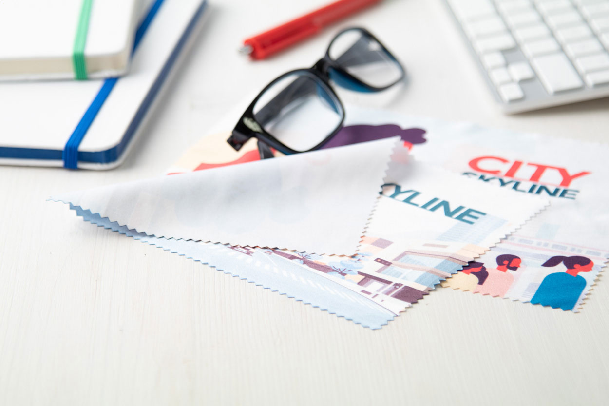Velká čisticí utěrka z mikrovlákna (180 g/m²) na brýle a obrazovky. Ideální pro sublimační tisk.