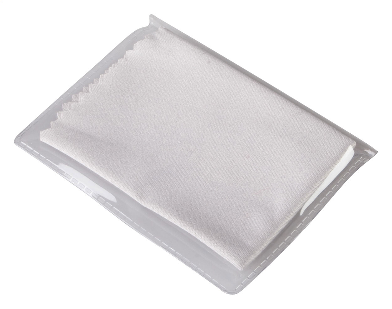 Čistící utěrka z mikrovlákna na brýle, v PVC pouzdře. Mikrovlákno 230 g/m². Rozměry utěrky: 150 x 150 mm.