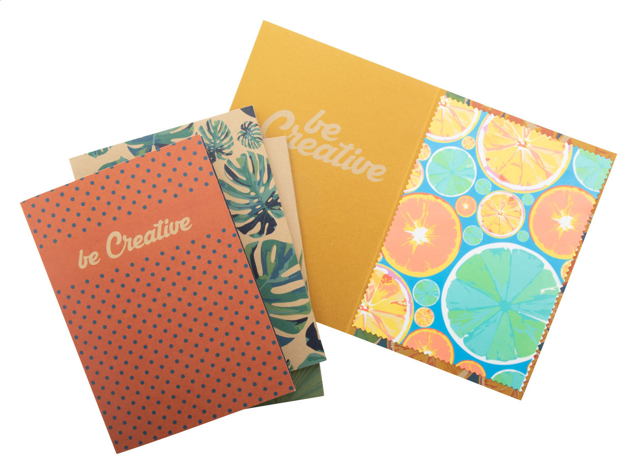 Papírová pohlednice s vlastní grafikou na obou stranách. Vč. čistícího hadříku na brýle ze 100% RPET (175 g/m²) z mikrovlákna se sublimačním potiskem. Cena zahrnuje digitální a sublimační tisk, nezahrnuje tiskovou přípravu. Min. mn.: 100 ks.