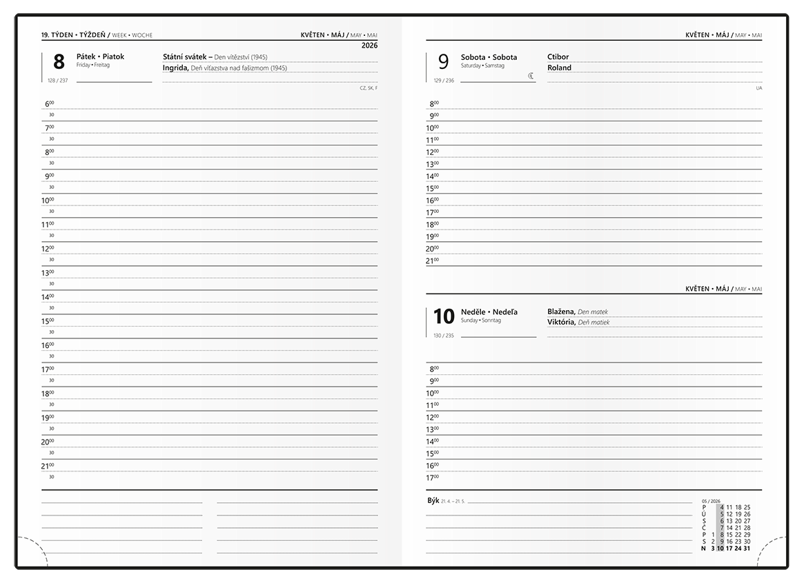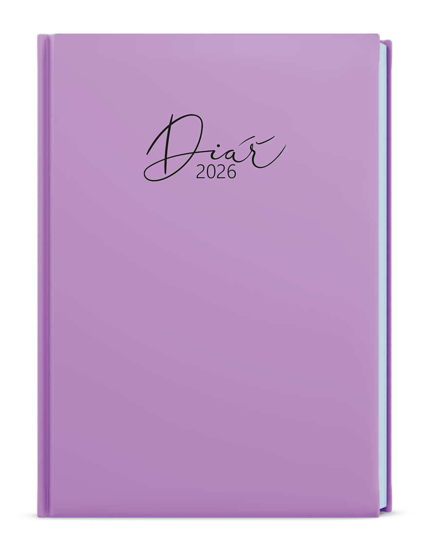 Denní diář v nepoškrabatelném laminu s parciálním lakem v pastelově fialové barvě je vyráběný ve formátu A5 a má velký prostor pro poznámky a plánování.