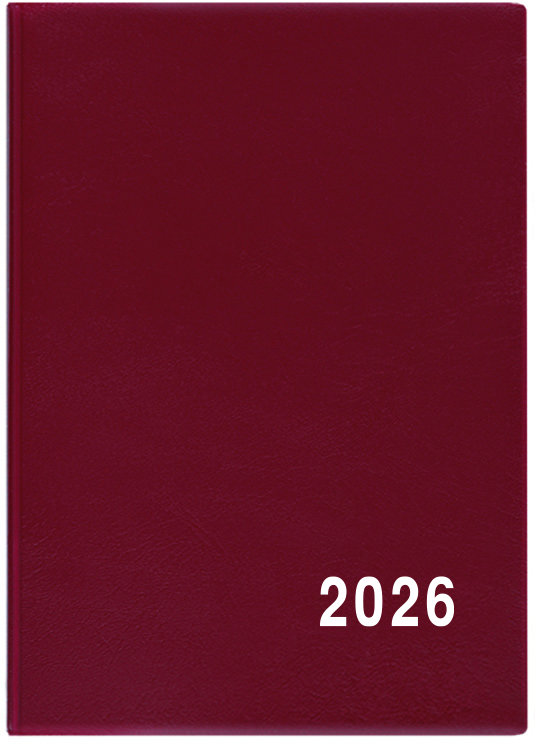 Jednoduchý a praktický měsíční diář vyrobený z jemného hladkého materiálu s polomatným povrchem v barvě bordó. Ideální pro každého, kdo si oblíbil měkkou šitou vazbu.