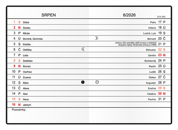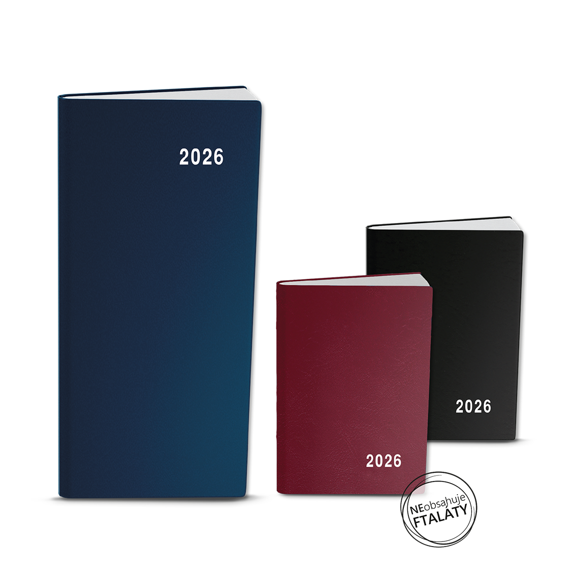 Jemný hladký materiál PVC, potisk roku bílou barvou, šitá vazba V1, ofset, 70g/m2
