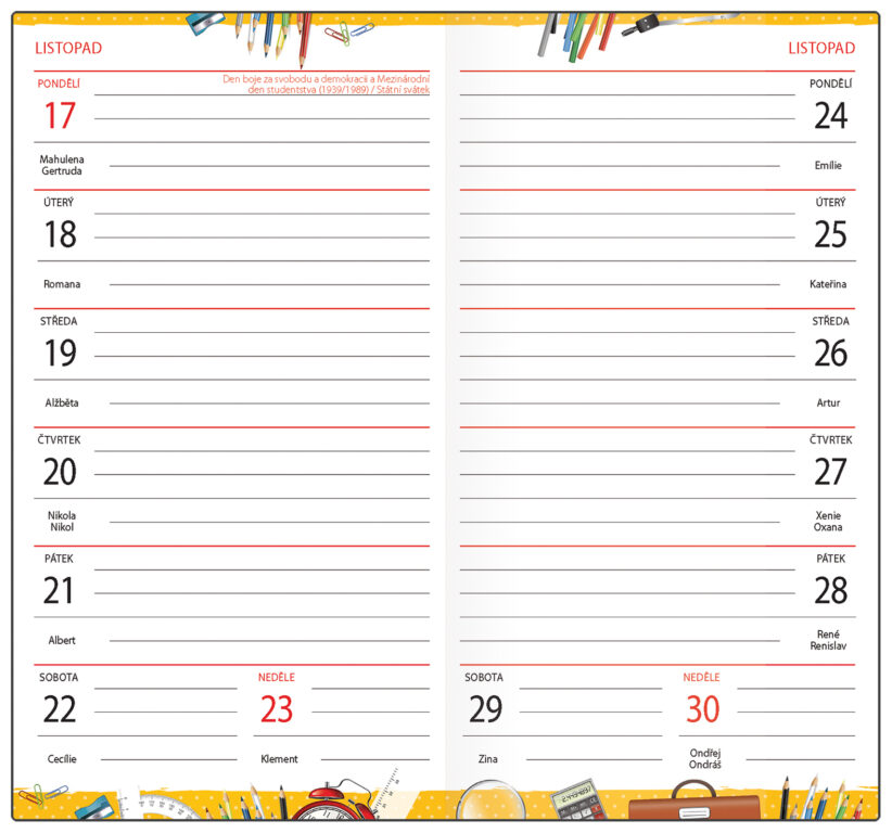 Školní diář na školní rok 2025/2026 je praktický diář s rozvrhem hodin a místem pro zapisování úkolů a poznámek, což z něj činí ideálního společníka pro každodenní organizaci školních povinností.. Rozměr: 8 x 15 cm.