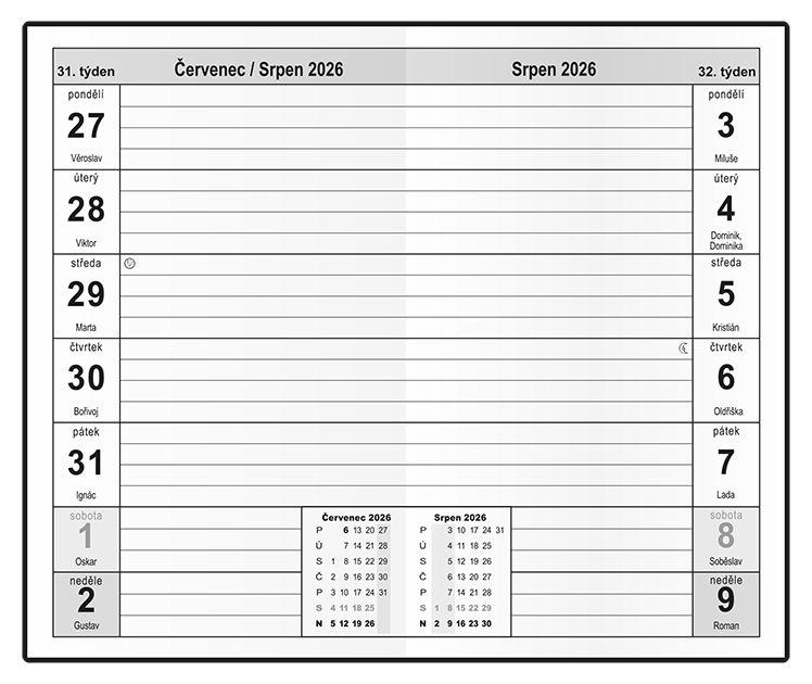 Jednoduchý a praktický týdenní diář z hladkého matného materiálu. Ideální pro každého, kdo si oblíbil měkkou šitou vazbu.