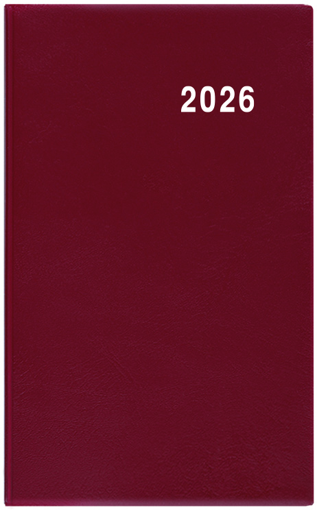 Jednoduchý a praktický týdenní diář vyrobený z jemného hladkého materiálu s polomatným povrchem v barvě bordó. Ideální pro každého, kdo si oblíbil měkkou šitou vazbu.