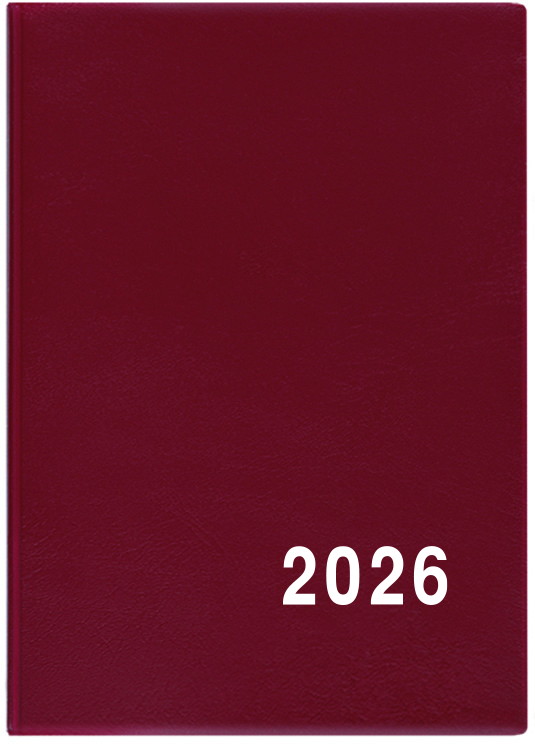 Jednoduchý a praktický týdenní diář vyrobený z jemného hladkého materiálu s polomatným povrchem v barvě bordó. Ideální pro každého, kdo si oblíbil měkkou šitou vazbu.