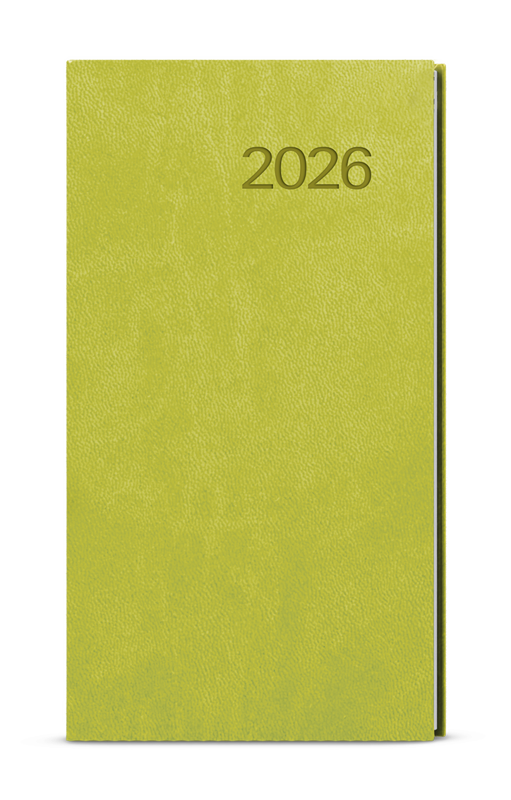 Kapesní týdenní diář v zelené barvě je vyráběný z jemné hladké vivelly. Trendy a praktický doplněk do každé kapsy. Diář má velký prostor pro poznámky a plánování.