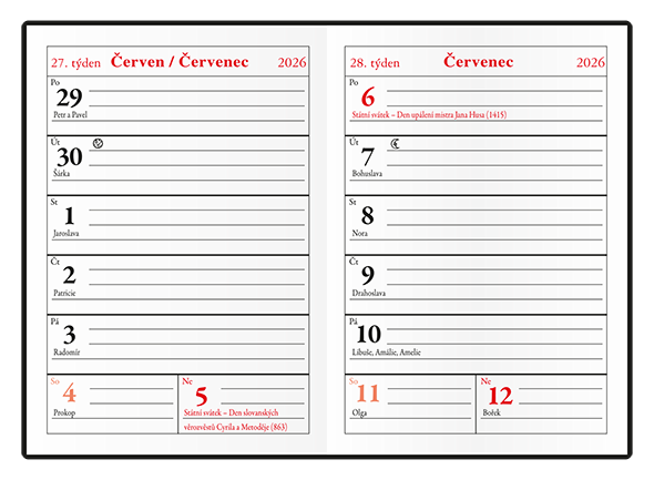 Jemný hladký materiál PVC, potisk roku bílou barvou, šitá vazba V1, ofset, 70g/m2