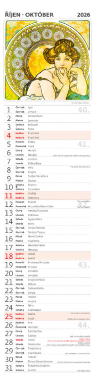 Nástěnný kalendář Alfons Mucha - vázanka 2026. Vyrobeno v ČR.