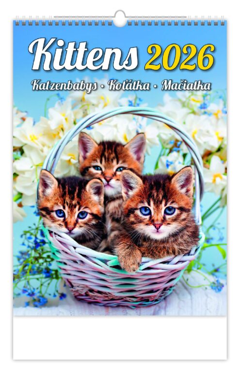 Nástěnný kalendář Koťátka 2026. Vyrobeno v ČR.