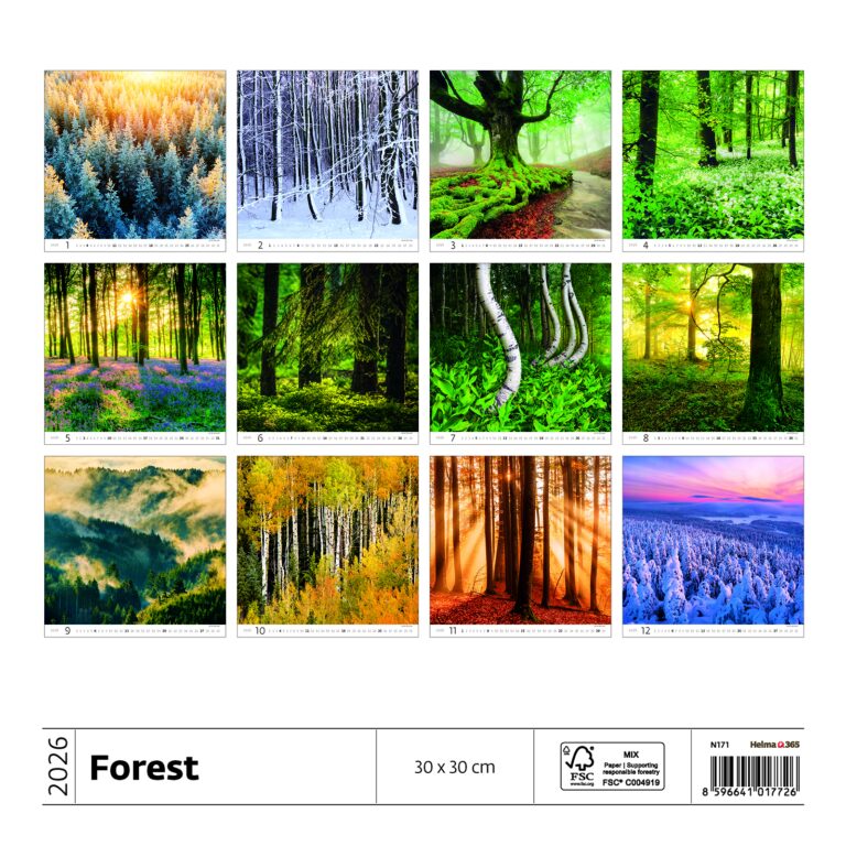 Nástěnný kalendář Les 2026. Vyrobeno v ČR.