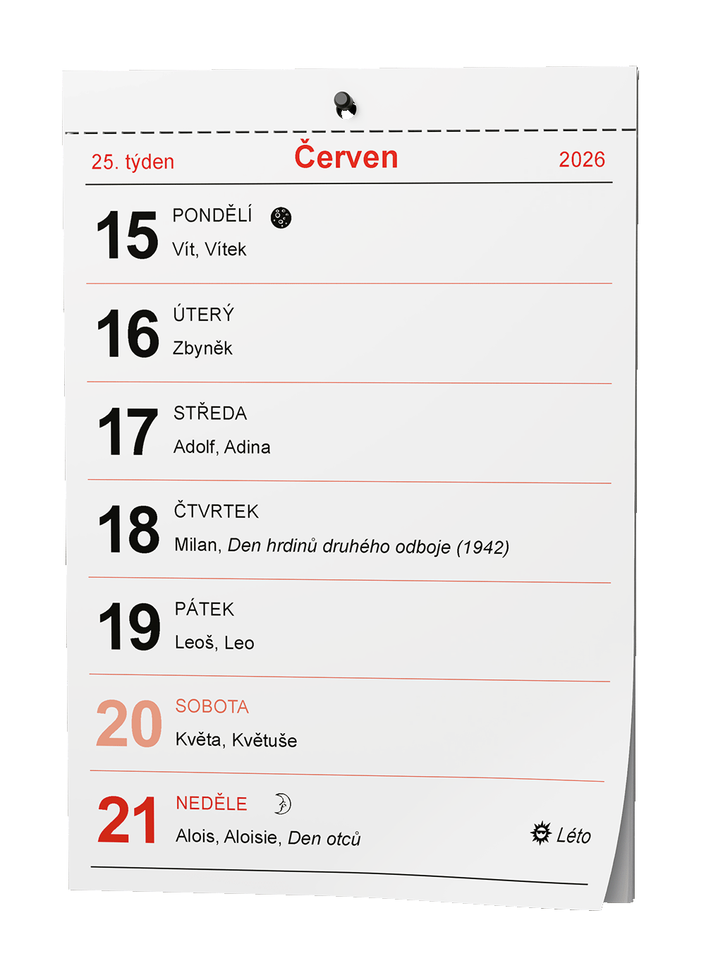 Trhací nástěnný kalendář s týdenním kalendáriem a většími písmeny a čísly ve formátu A5.