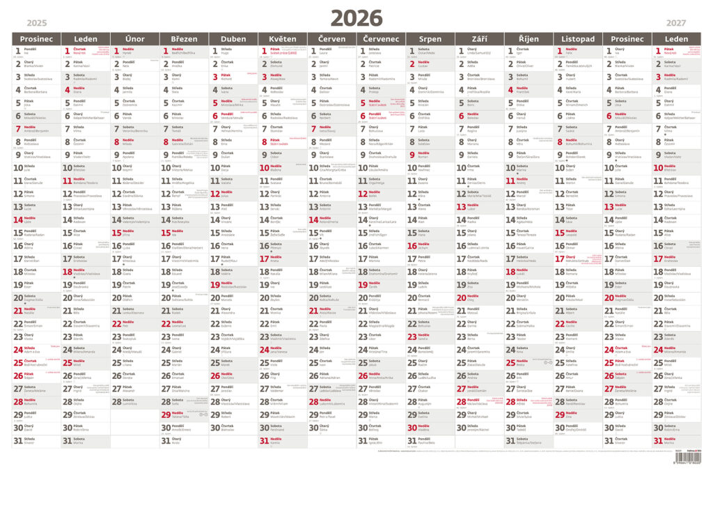 Plánovací roční mapa A1 bezobrázková 2026. Vyrobeno v ČR.