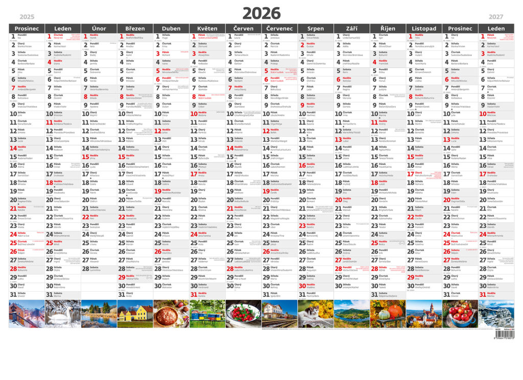 Plánovací roční mapa A1 obrázková 2026. Vyrobeno v ČR.