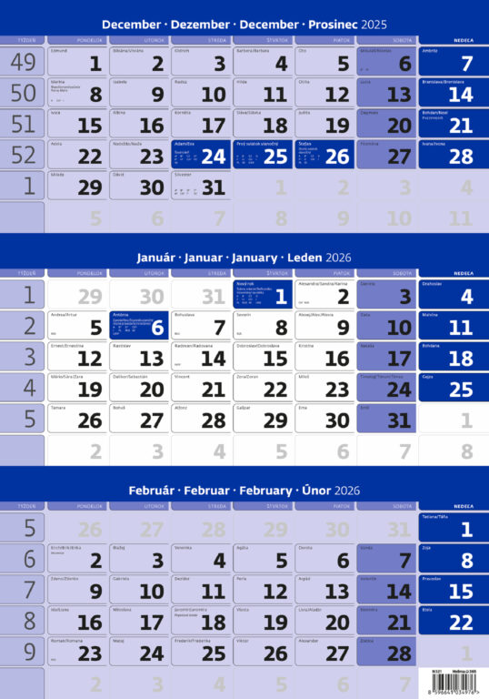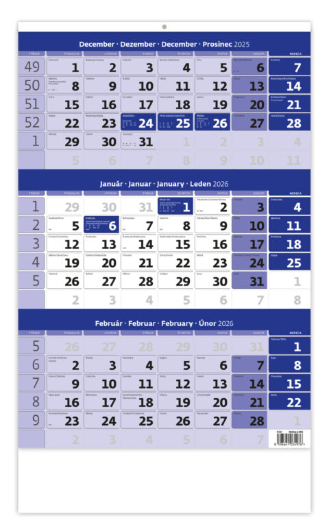 Trojmesačný pracovný kalendár modrý 2026.