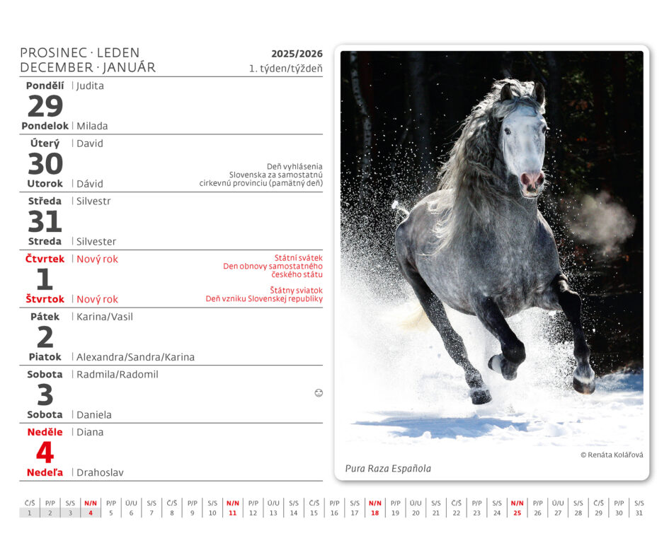 Stolní kalendář MiniMax Koně 2026. Vyrobeno v ČR.