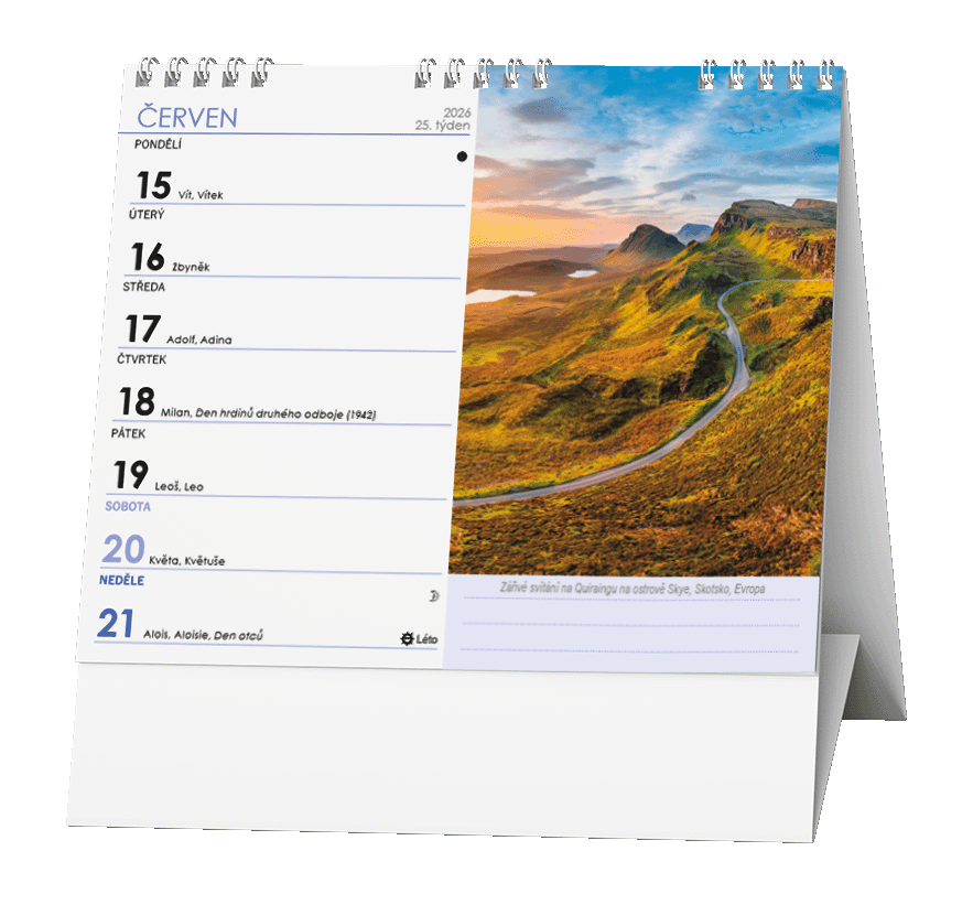 Ideální kalendář za ideální cenu s týdenním kalendáriem a v praktickém formátu s obrázky řek, hor a jezer.