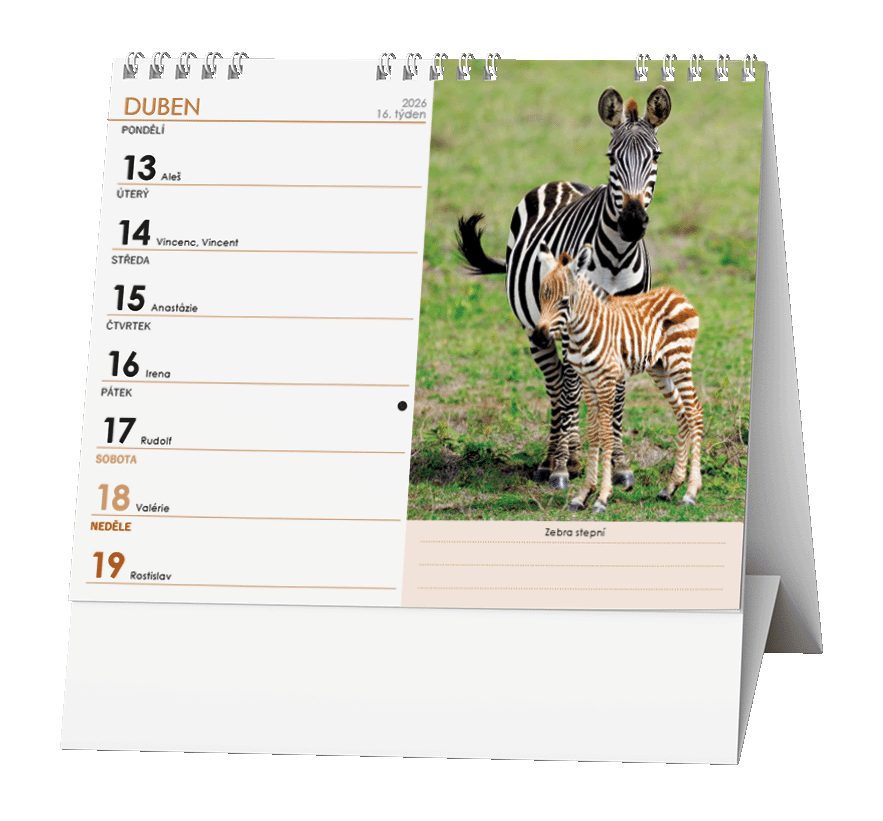 Ideální kalendář za ideální cenu s týdenním kalendáriem a v praktickém formátu s motivem zvířátek.