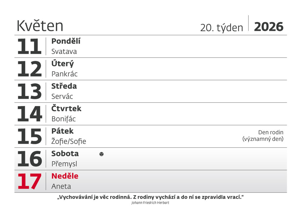 Plánovací kalendář Slunečnice 2026. Vyrobeno v ČR.
