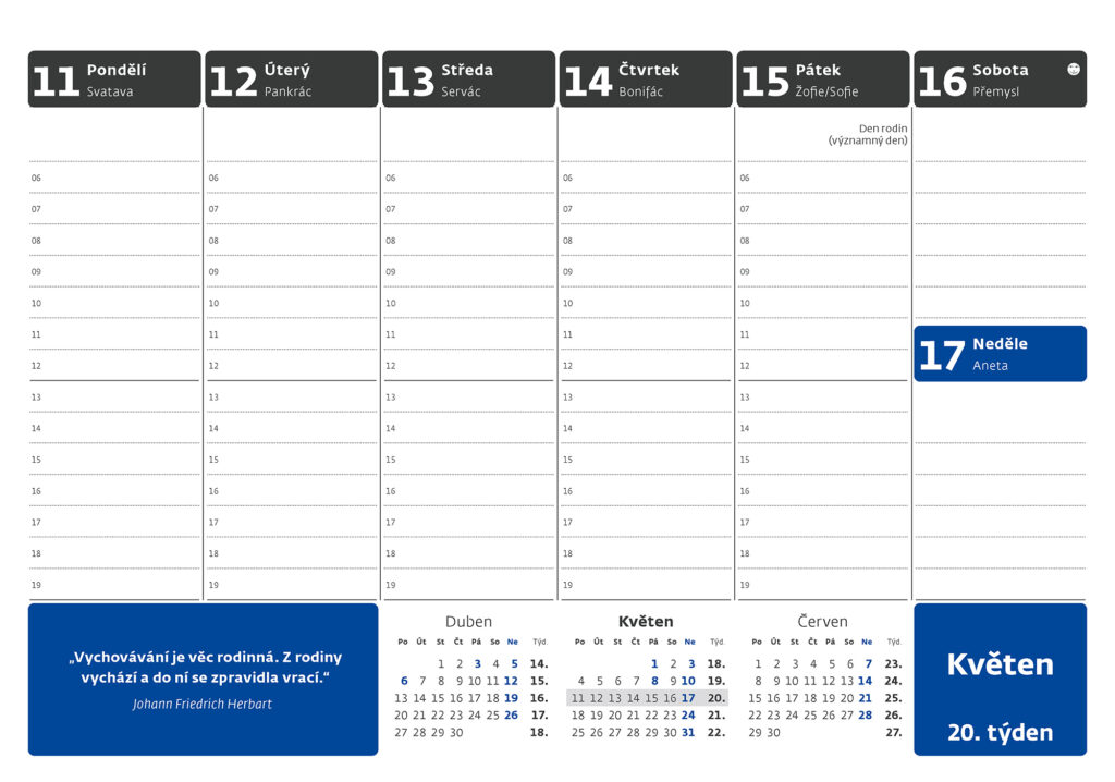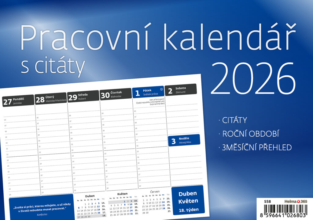 Pracovní kalendář s citáty 2026. Vyrobeno v ČR.