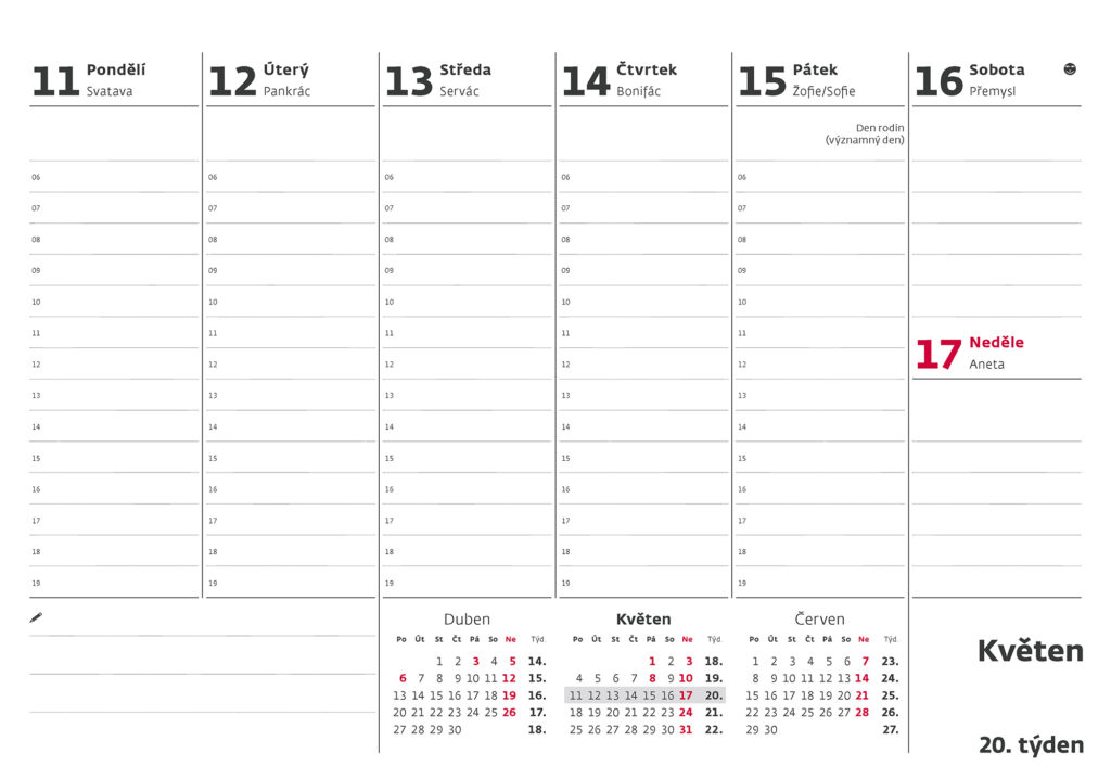 Pracovní kalendář 2026. Vyrobeno v ČR.