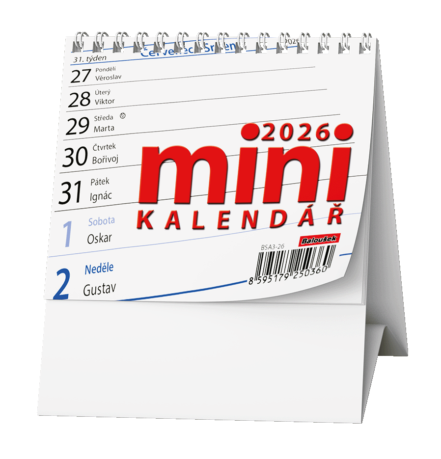 Praktický stolní kalendář s týdenním kalendáriem v mini formátu.