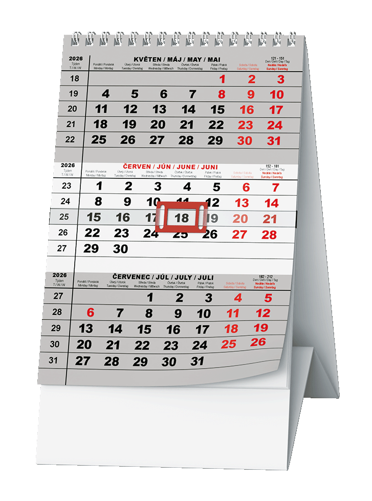 Praktický stolní kalendář s tříměsíčním kalendáriem a posuvným jezdcem. Vhodný právě na Váš stůl.