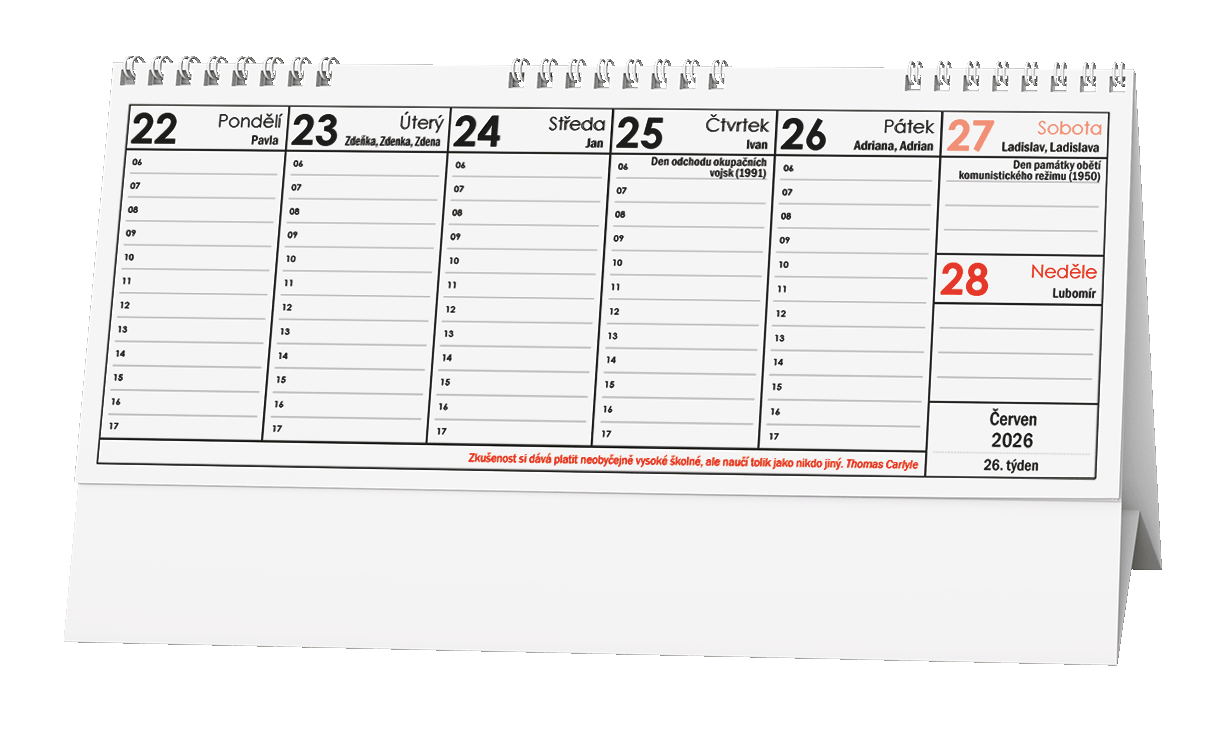 Pracovní kalendář s citáty na každý týden. V menším formátu a s týdenním kalendáriem bude Vašim praktickým pomocníkem.