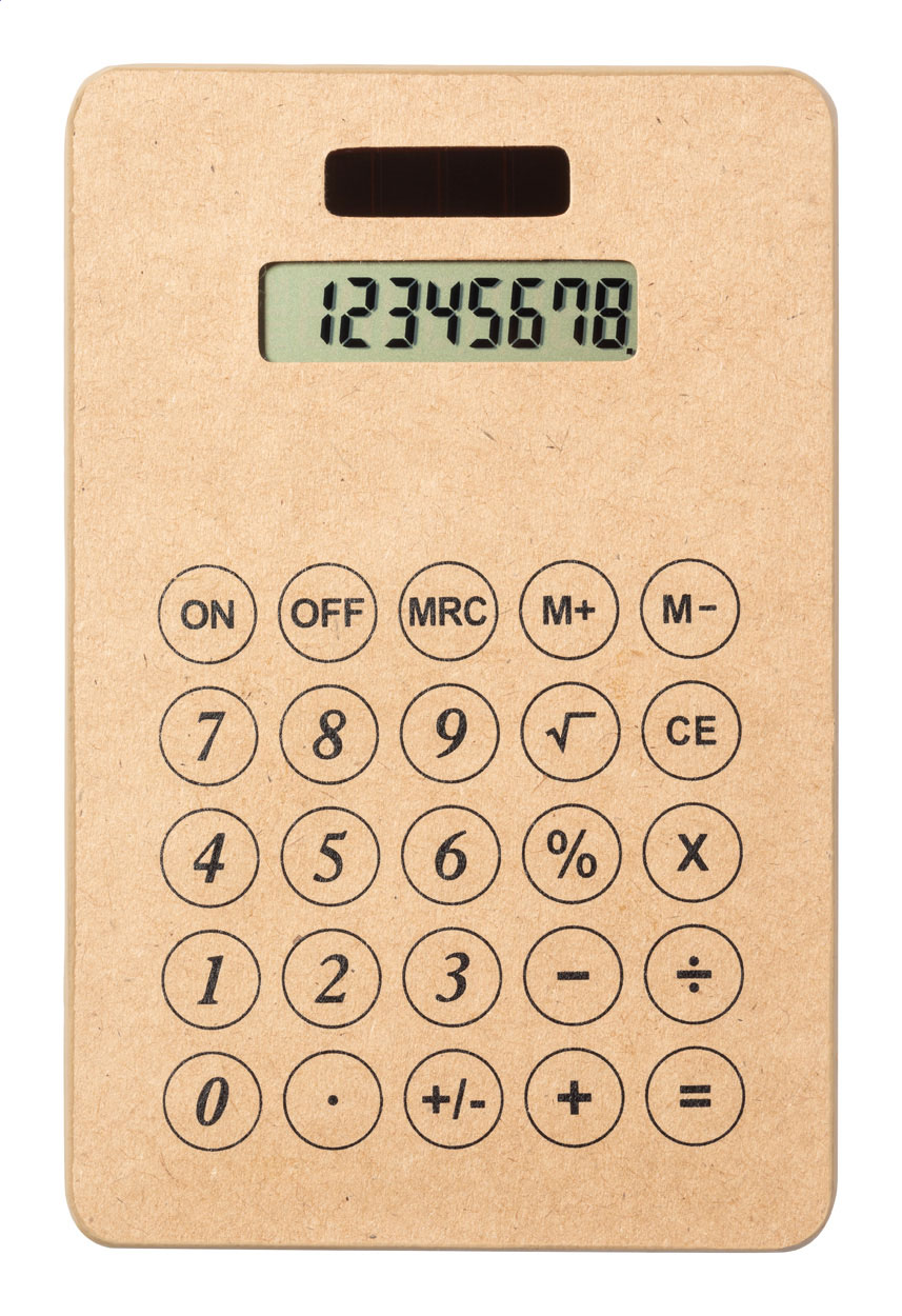 8místná solární kalkulačka v pouzdře z recyklovaného papíru. Včetně knoflíkové baterie.