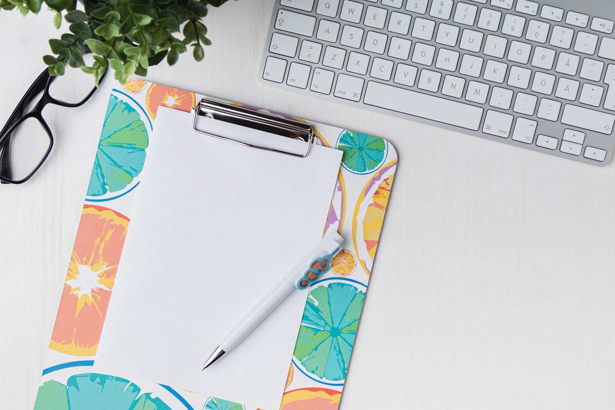 Zakázková výroba A4 podložek s klipem z HDF dřevovláknité desky s vlastní grafikou na přední straně. Cena je vč. UV LED potisku, nezahrnuje tiskovou přípravu. Min. mn.: 50 ks.