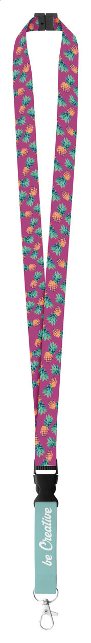 Polyesterový lanyard na zakázku s odnímatelnou kovovou karabinkou a bezpečnostní přezkou. Se sublimačním potiskem na obou stranách. Cena nezahrnuje tiskovou přípravu. Min. mn.: 100 ks.